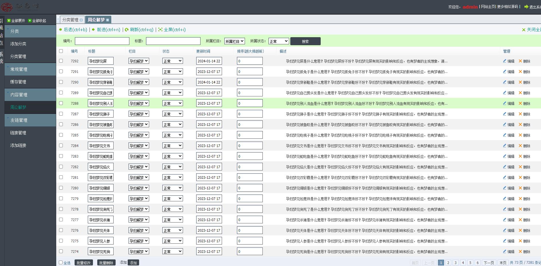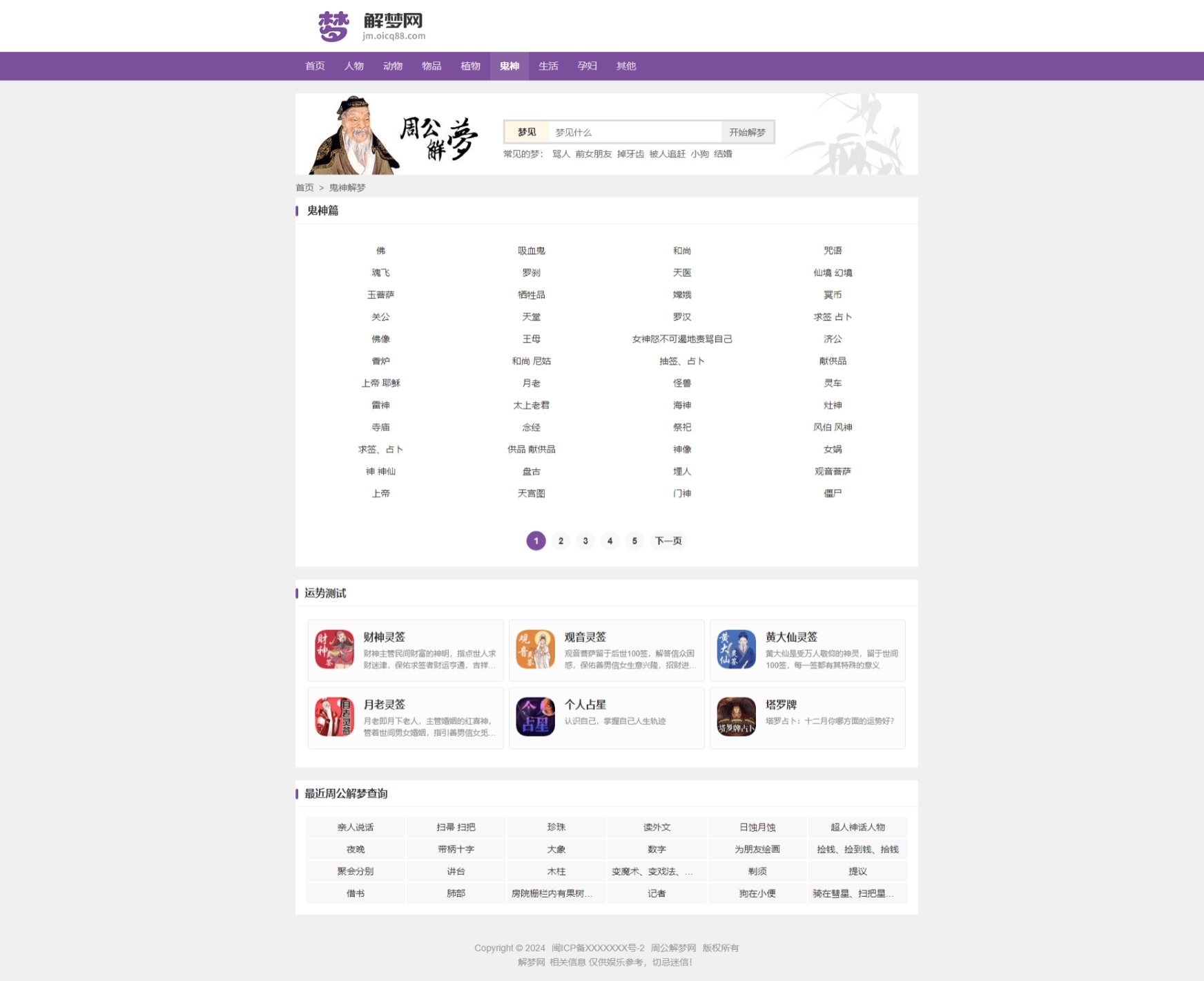 - 3、前端页面自适应,周公解梦后台可发文章。