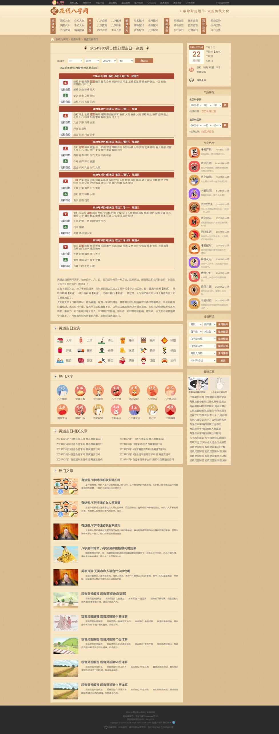 - 2、黄历查询板块通过本地数据库生成,不调用任何接口。