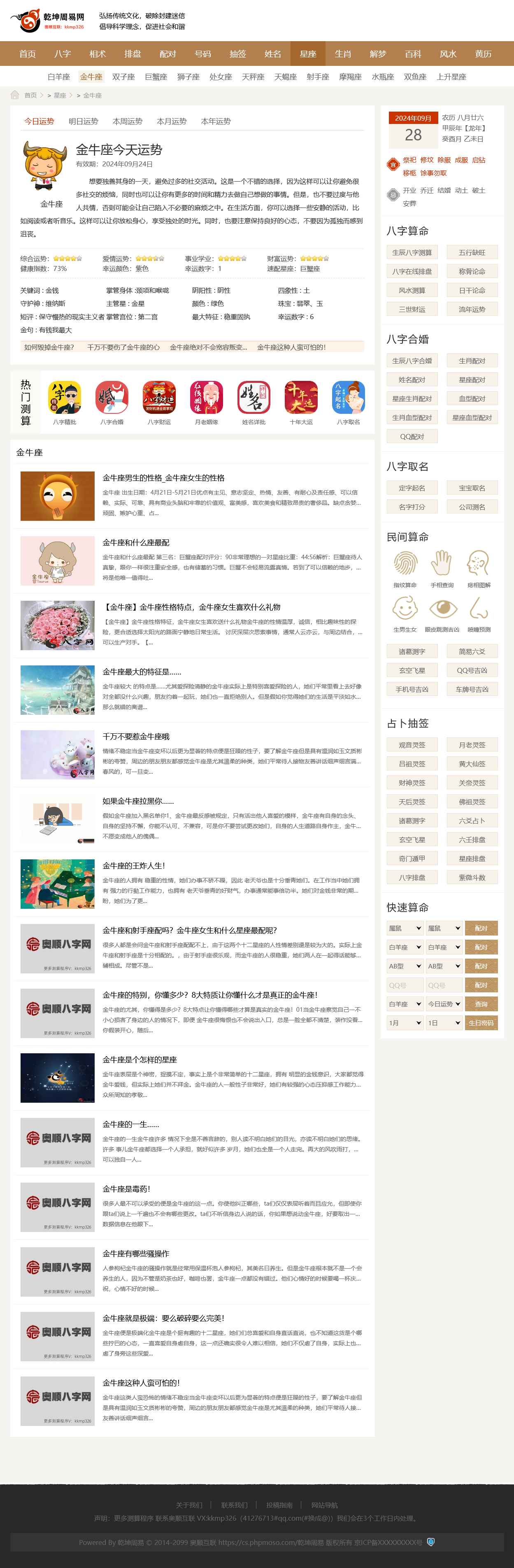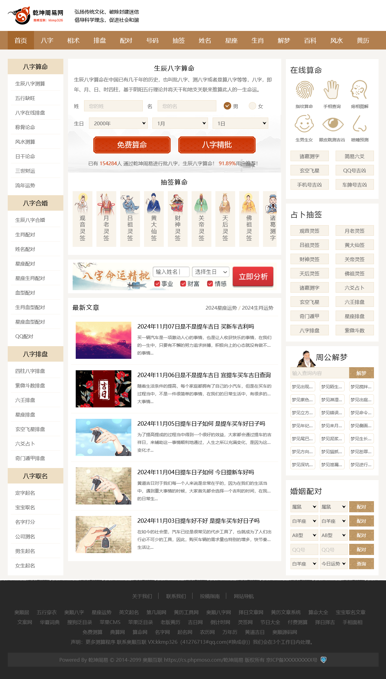 - 2、本程序包含文章系统,结合自身的免费测算功能,适合做权重站。