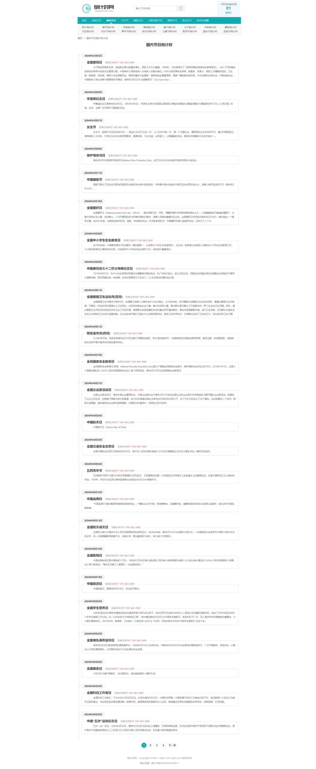 - 7、首页每年的月份分类节日数据根据时间排序而不同。
