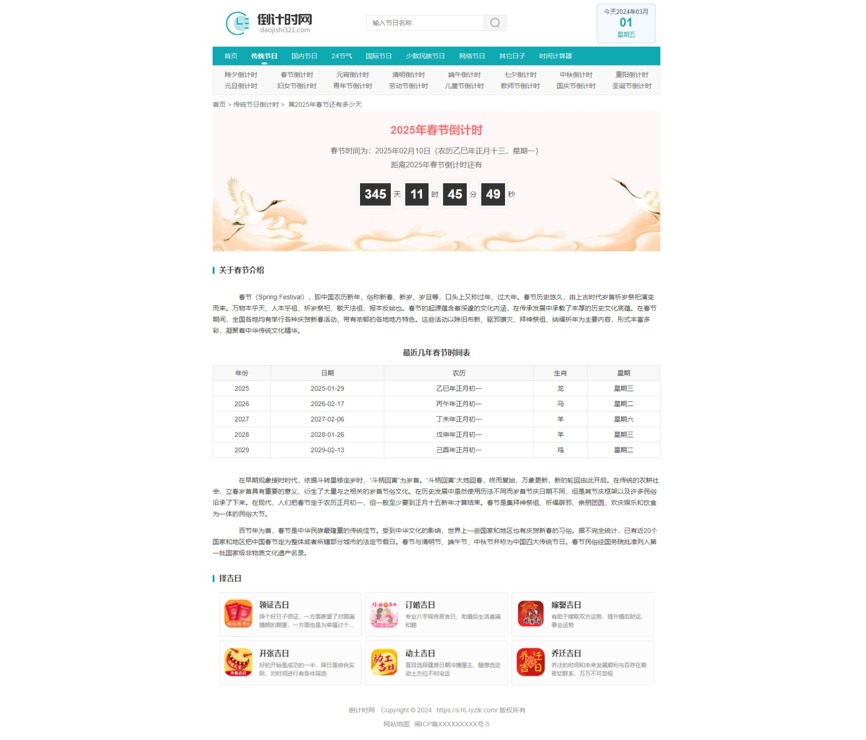 - 8、节日倒计时功能实时显示,节日详情页带节日简介!