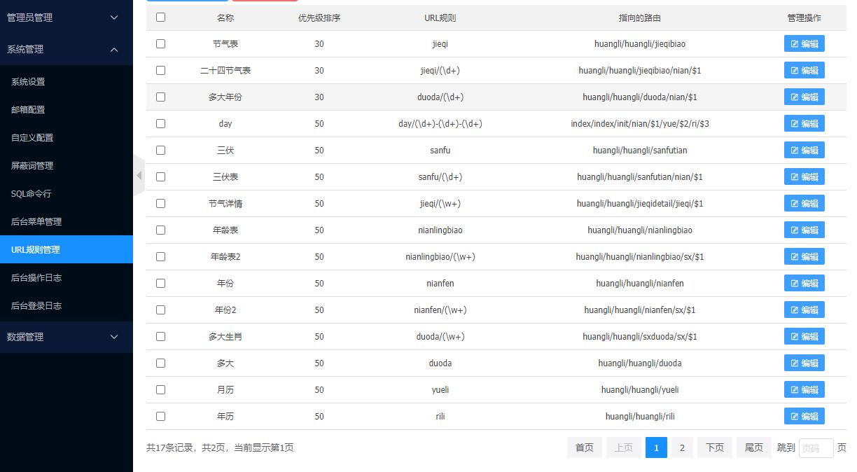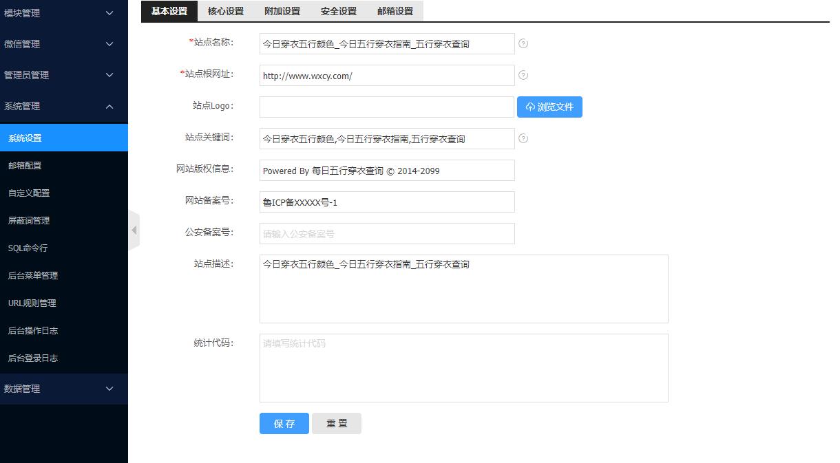 8、网站后台主要修改用于版权信息 备案号 网站域名 友情链接 seo后缀等,网页的标题 关键词 描述需要在模板修改,后台作用比较弱。