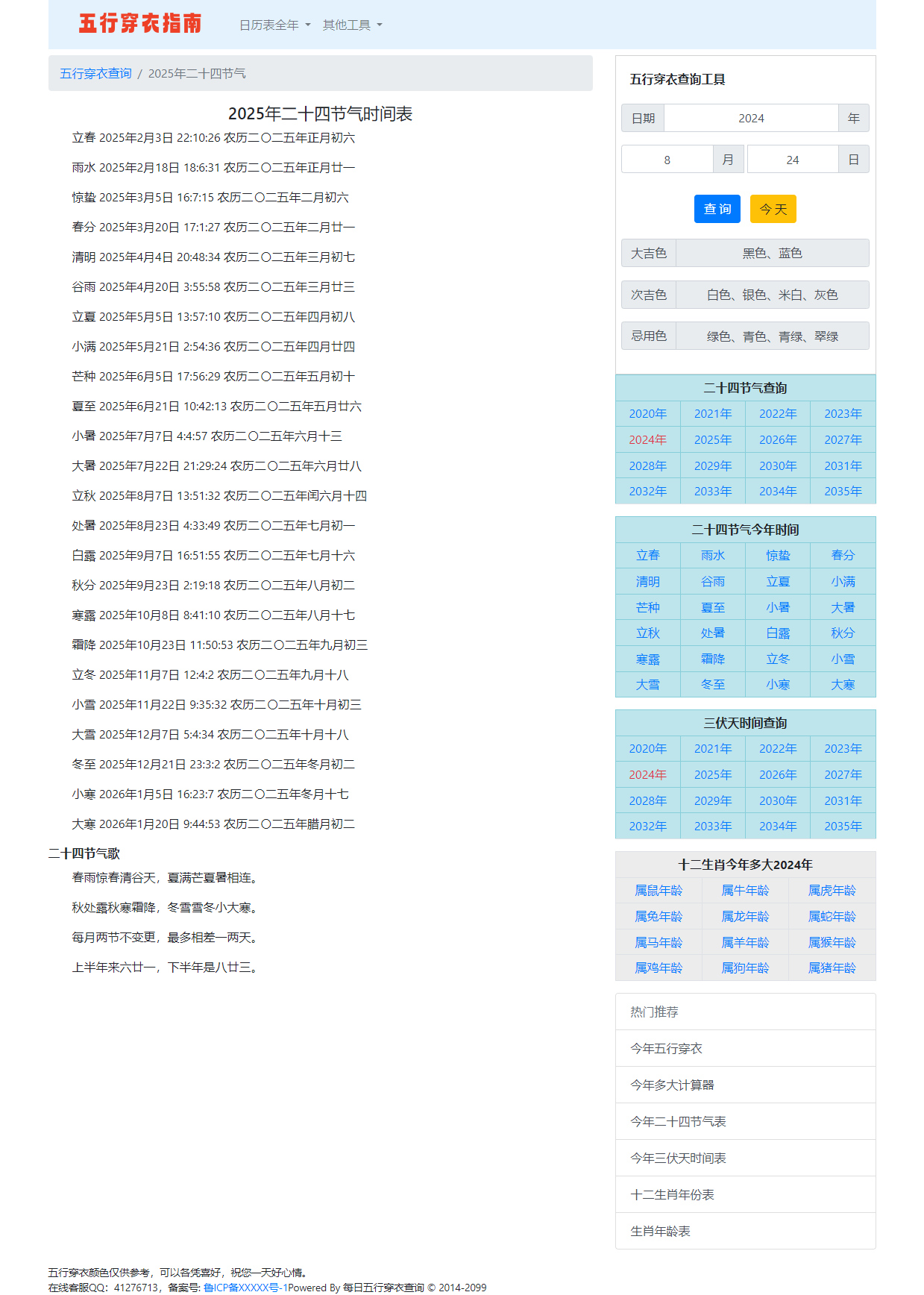 (g)当年(根据当前年份自动更新)各个节气的详细时间和节气简介