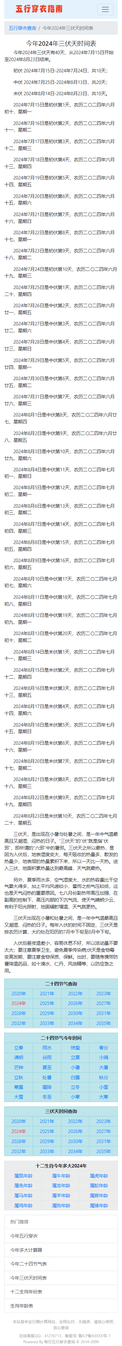 (h)三伏天时间表(包括初伏,中伏,末伏的起止时间和总天数)