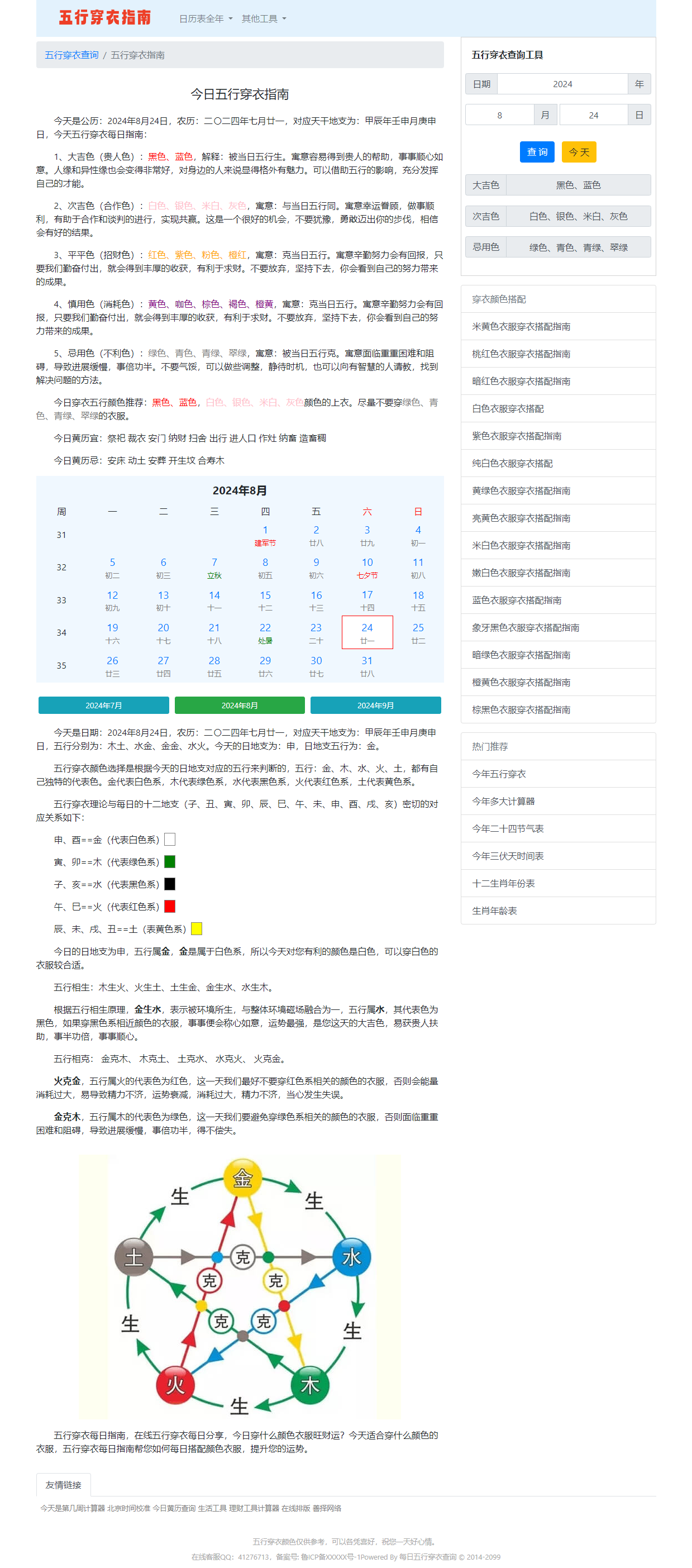 3、通过算法、五行相生相克计算每日五行穿衣颜色,算法数据都在程序内,开源可二开!
