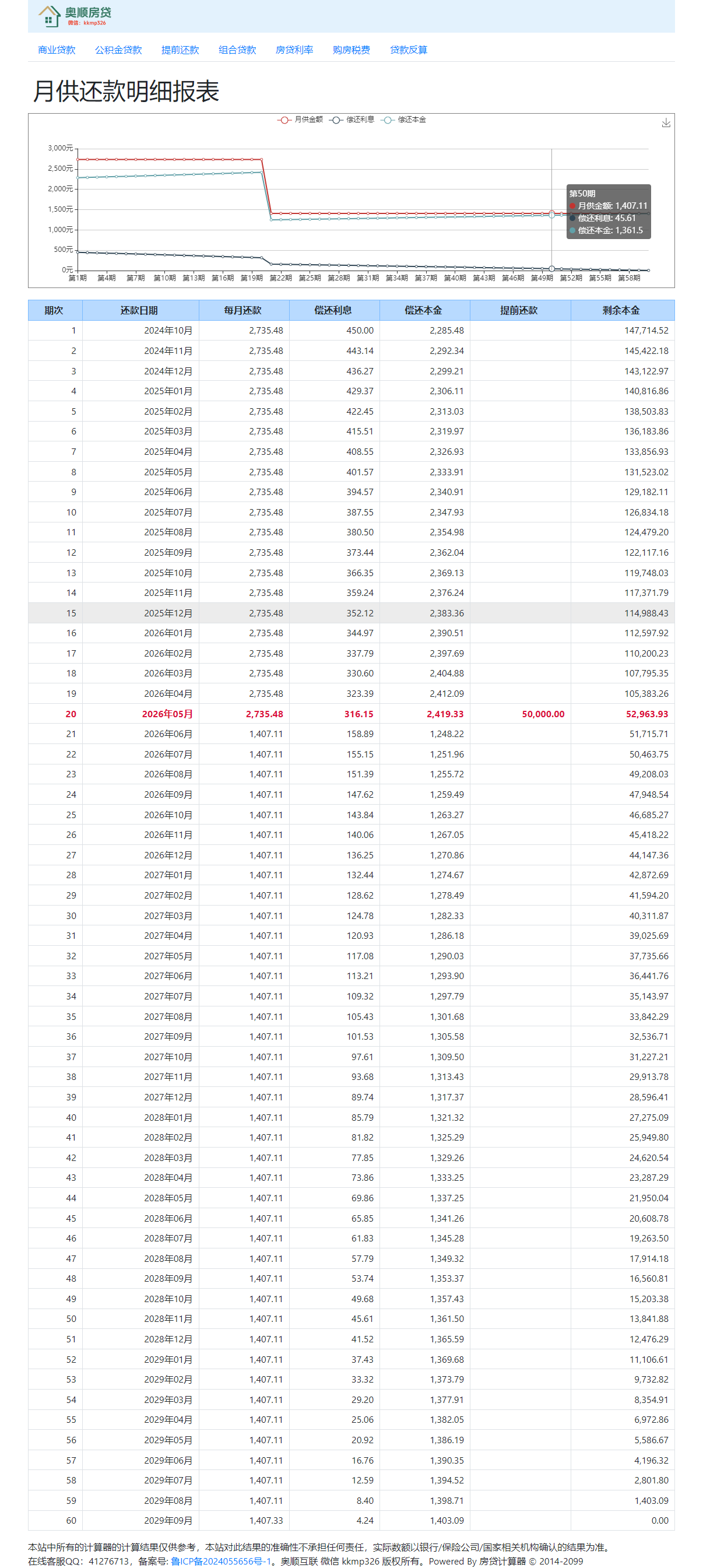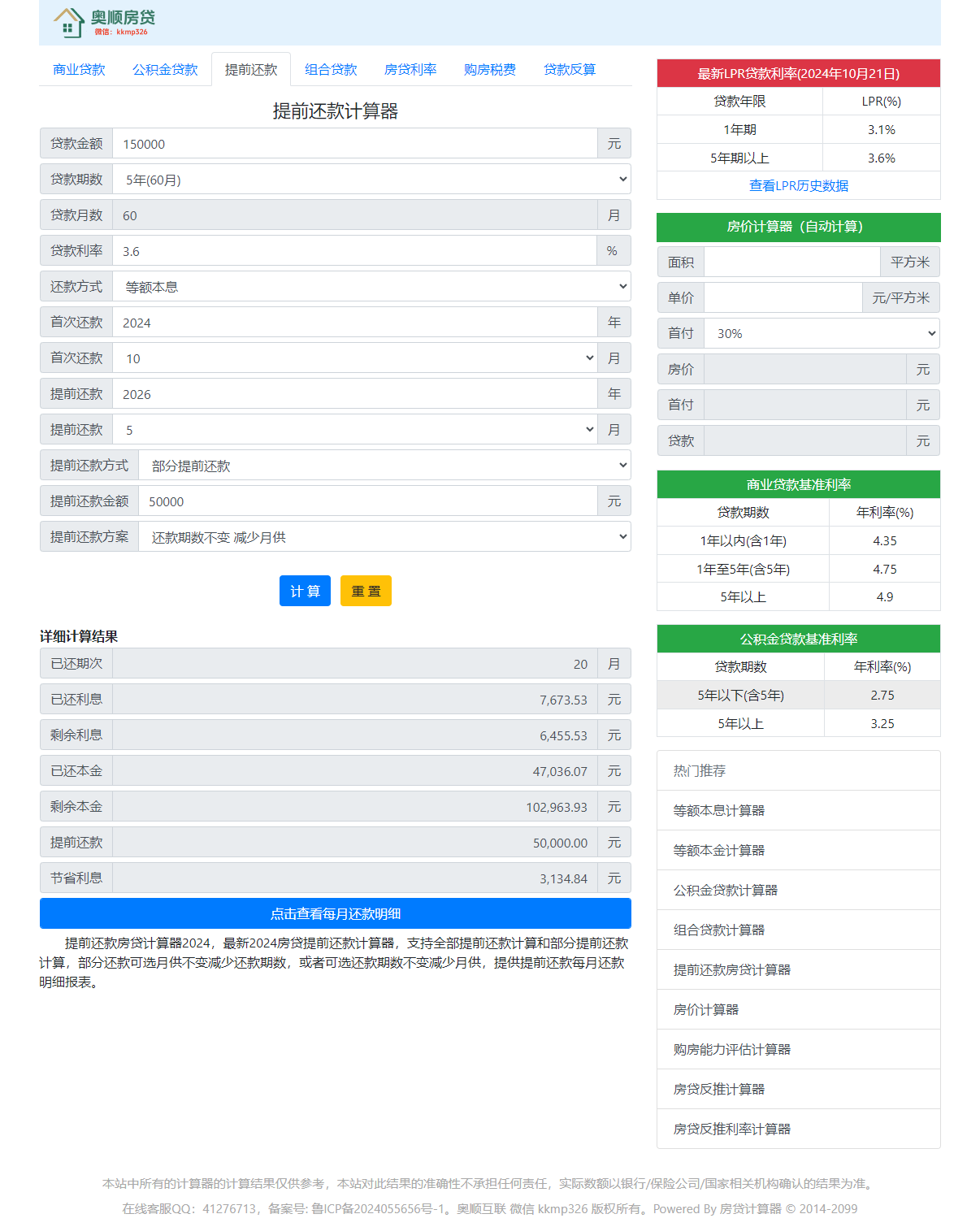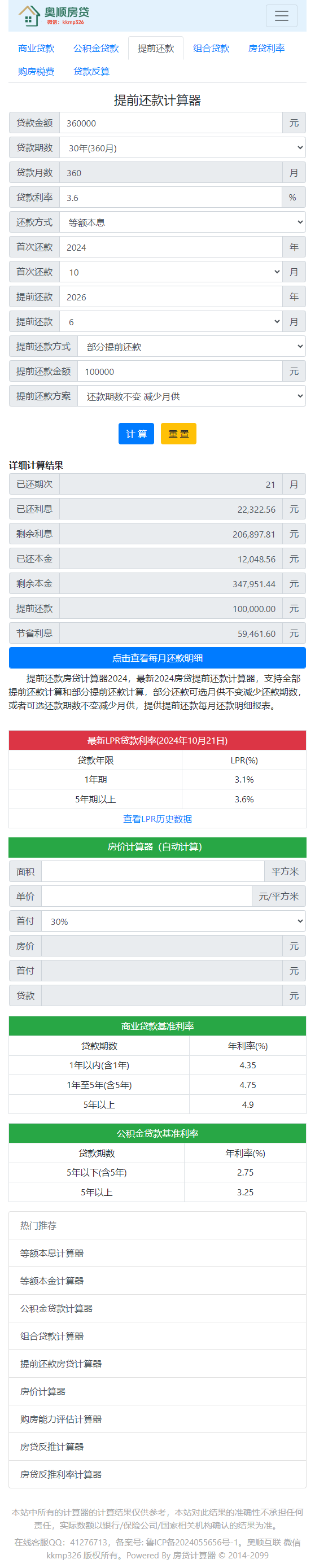 (e)提前还款计算器(提前全部还款/提前部分还款/月供不变减少还款期数/还款期数不变减少月供) + 月还款计划明细报表