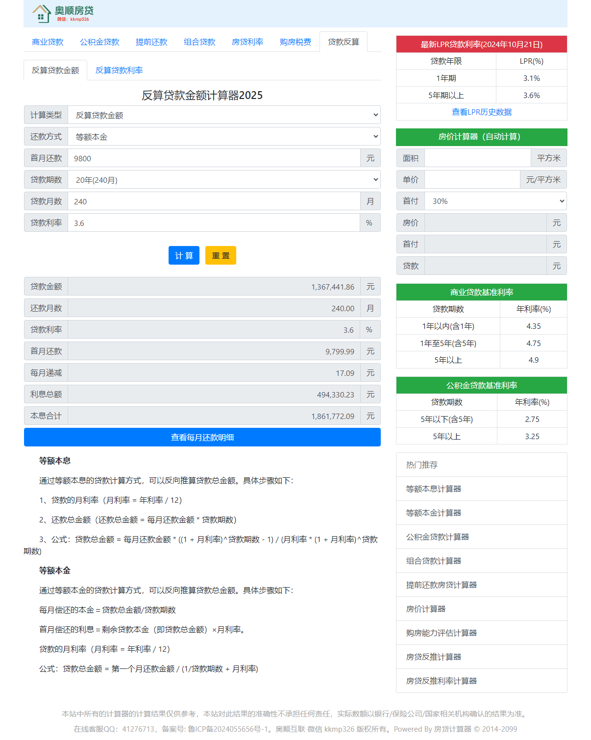 (c)公积金房贷计算器 + 月还款计划明细报表
