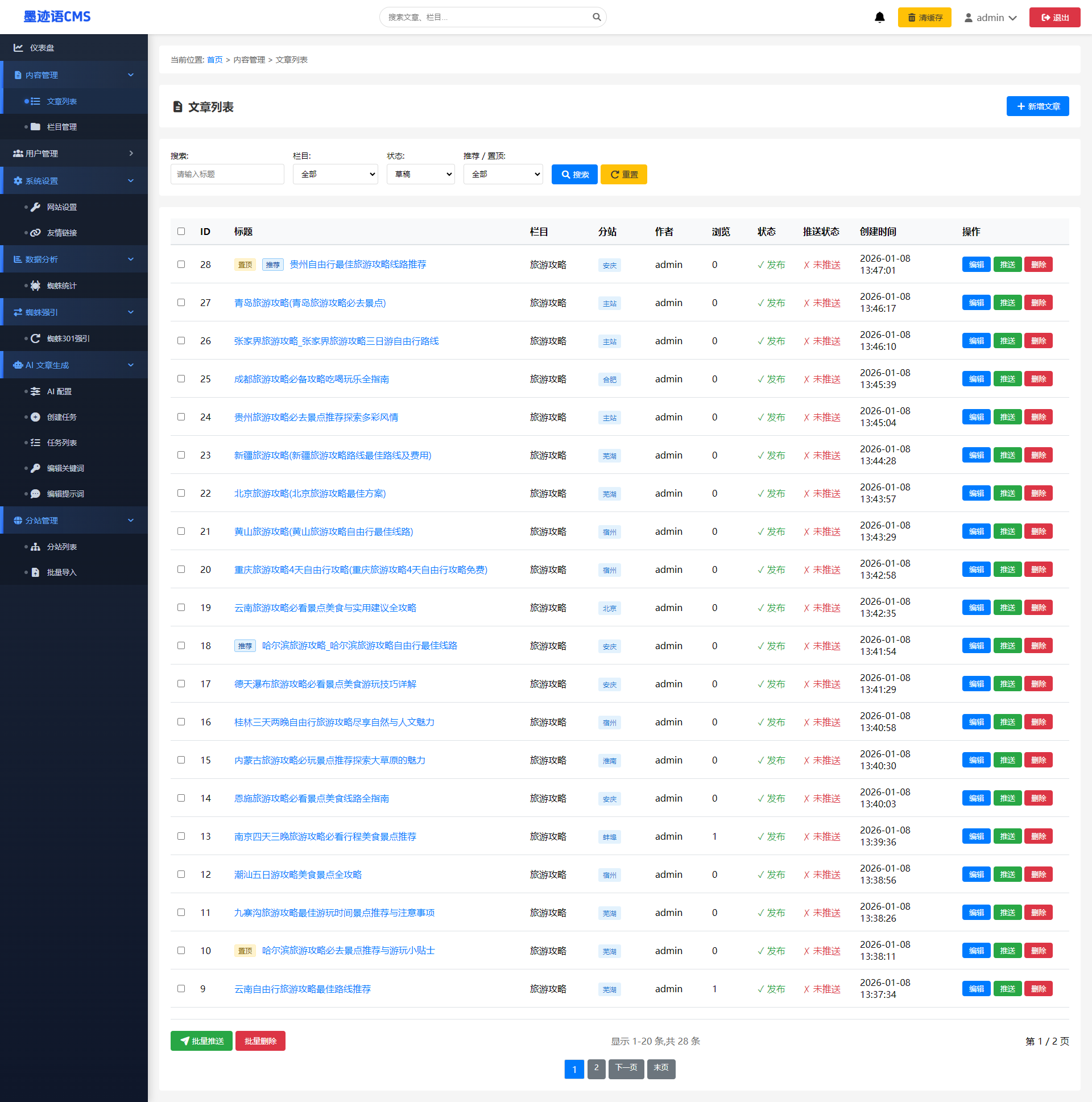AI全自动生成与千万级泛解析站群系统 – 墨迹语-CMS