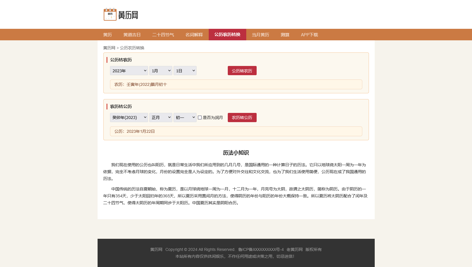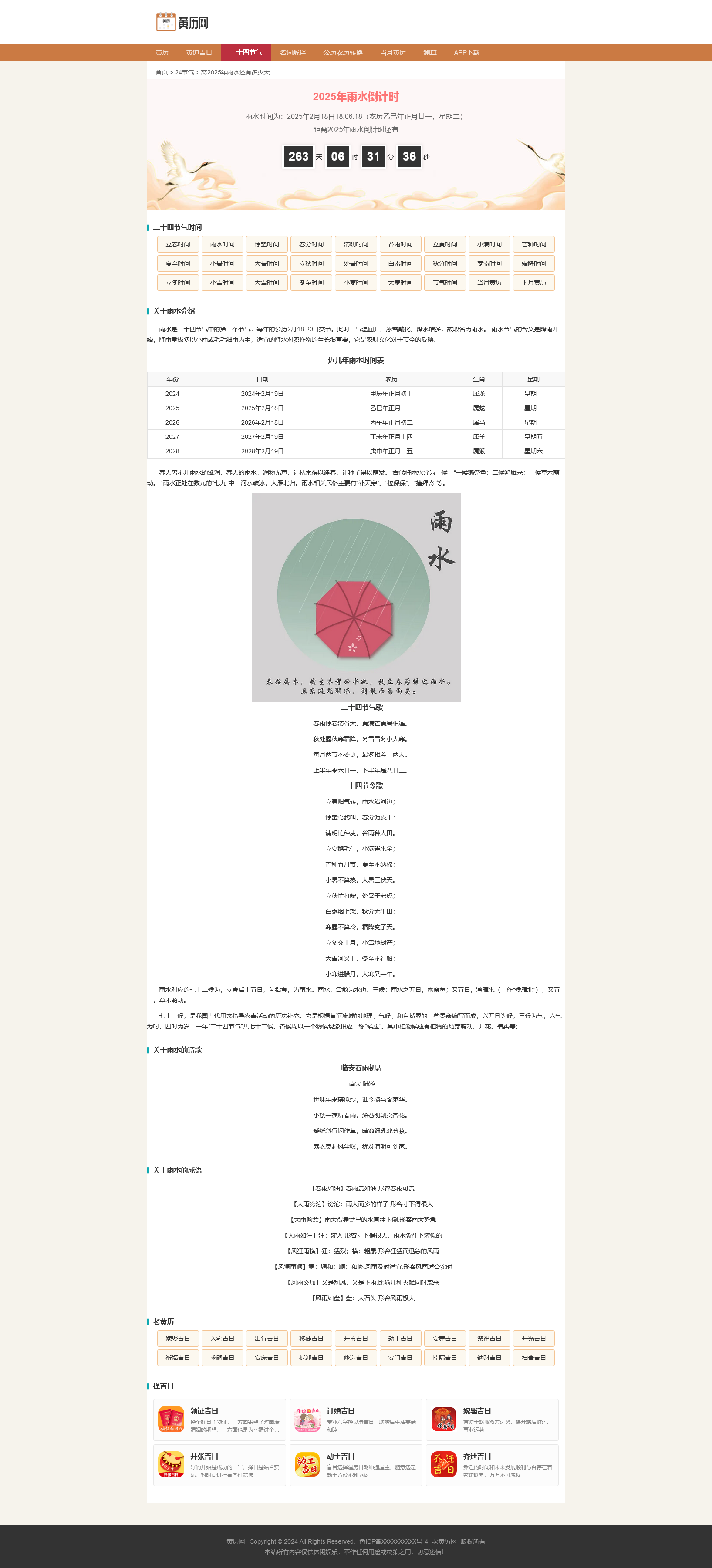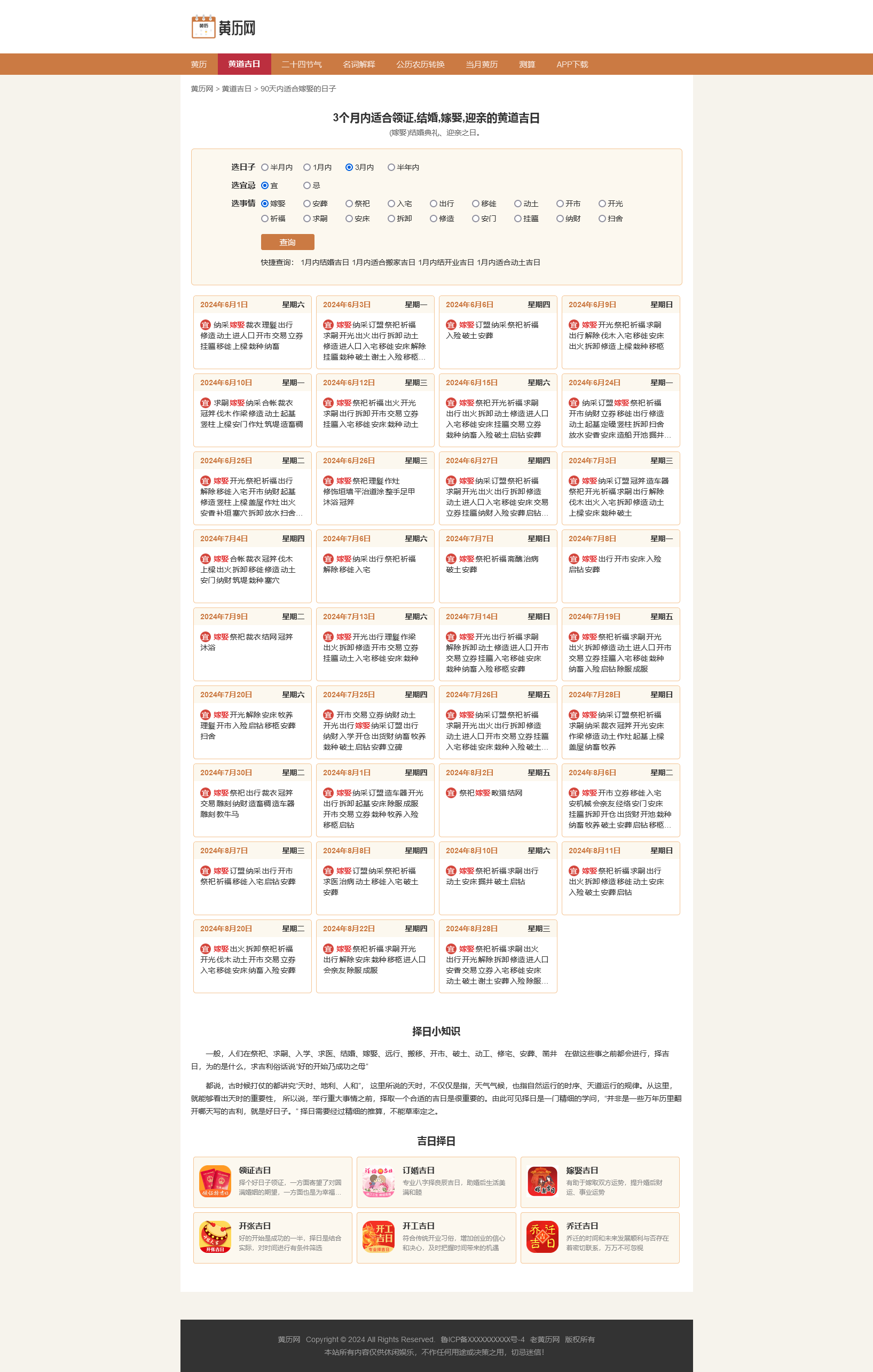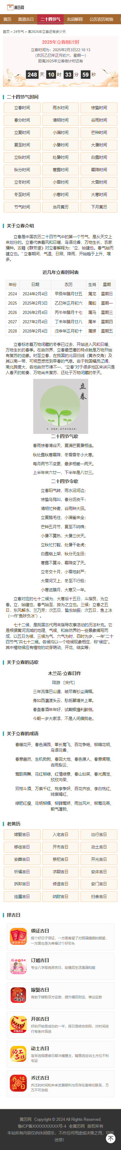 - 2、首页增加二十四节气、当年每月日历表、当月黄道吉日、近期黄道吉日的汇总导航。