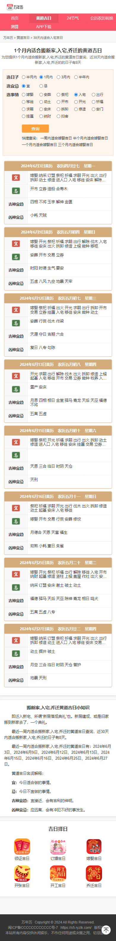 - 2、首页聚合了当年每个月的黄历汇总。