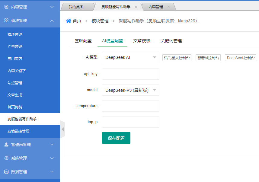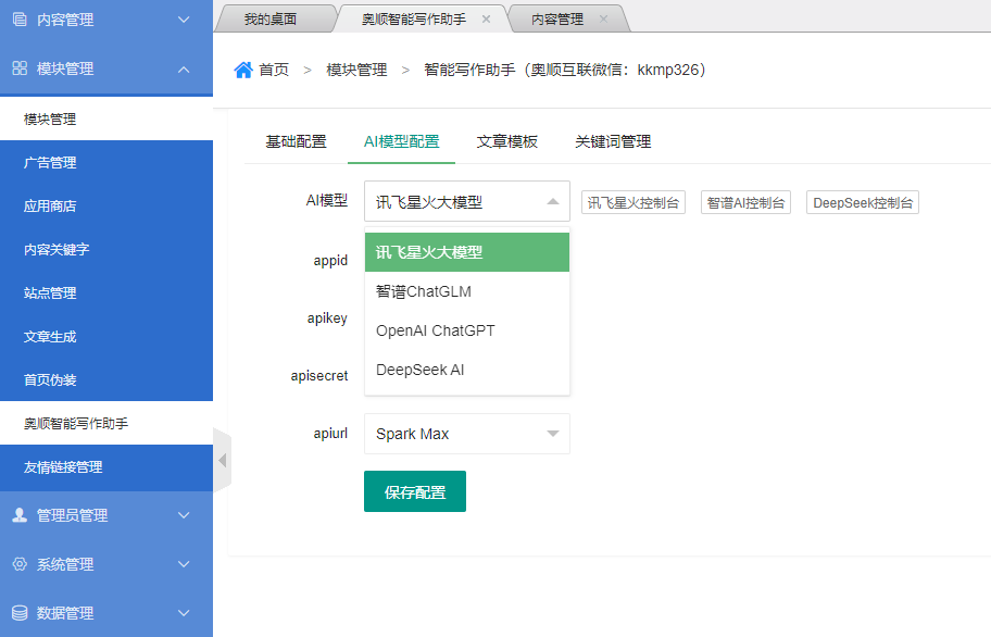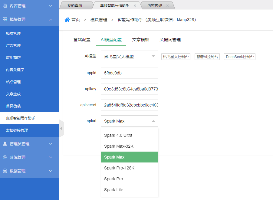 - 讯飞星火: 需配置APPID、API密钥、密钥