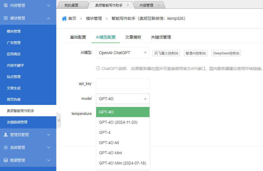 - ChatGPT: 需配置API密钥(国内服务器建议使用中转链接)