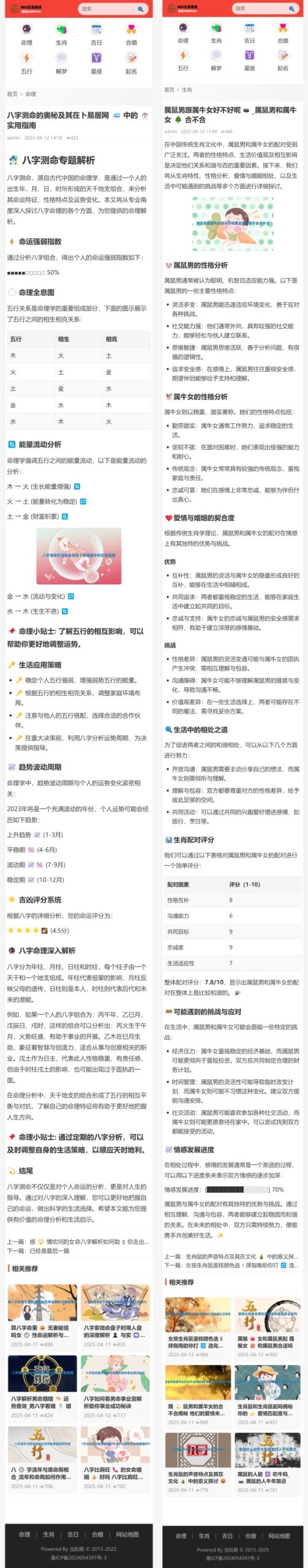2、基于黄历、八字、五行真实算法结合AI智能生成,确保内容既符合传统文化又符合原创SEO性。